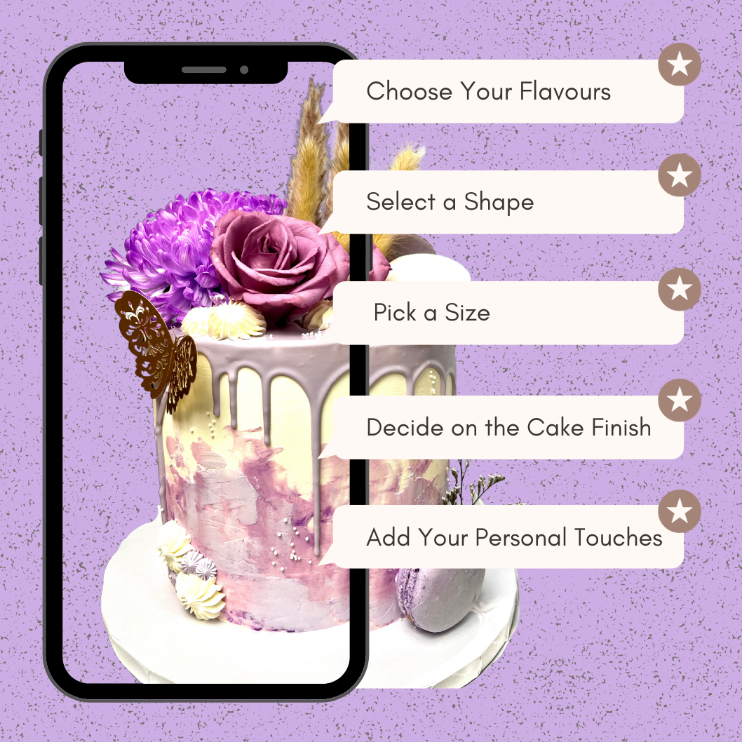 From whimsical designs to elegant creations, our team is dedicated to crafting a cake that not only looks spectacular but tastes divine. Choose your flavours, fillings, icings, and let us know any specific design elements you have in mind. No idea is too bold, no detail too small.